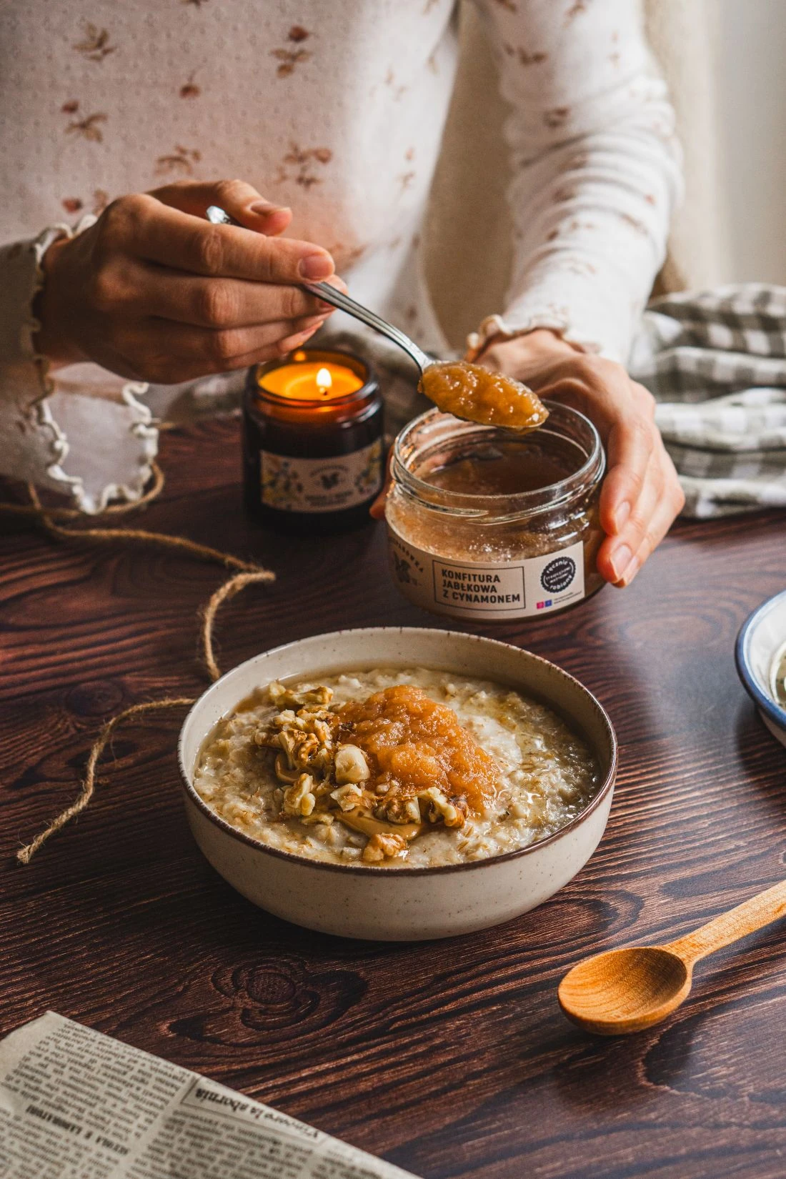 Szukasz pomysłu na zdrowe, pożywne i rozgrzewające śniadanie? Owsianka jabłkowo-cynamonowa to doskonały wybór! Kremowa baza z płatków owsianych, wzbogacona dodatkiem masła orzechowego, konfitury jabłkowej z cynamonem, orzechów włoskich i kropli miodu, łączy w sobie delikatność i wyraziste smaki. Cynamonowy aromat sprawia, że poranki stają się przytulniejsze, a sam przepis jest szybki i prosty do wykonania. Ta owsianka to nie tylko śniadanie – to chwila przyjemności, która dodaje energii i wprowadza w dobry nastrój na cały dzień. Spróbuj, a stanie się Twoim ulubionym rytuałem!