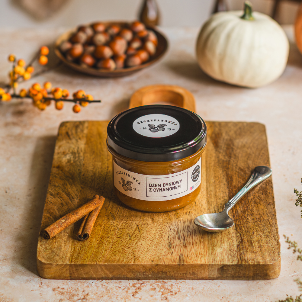 Nasz dżem dyniowy z cynamonem to połączenie słodyczy dojrzałej dyni, soczystych jabłek i szczypty aromatycznego cynamonu. Powstał ręcznie w sposób rzemieślniczy w Szczepanówce.