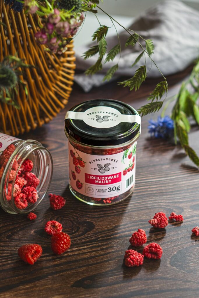 Liofilizowane maliny w eleganckim szklanym słoiku to nie tylko smakowita przekąska, ale także piękny pomysł na naturalny prezent.