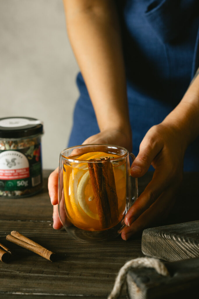 Przepis na rozgrzewający napar z Malinową Zorzą, pomarańczą i cynamonem