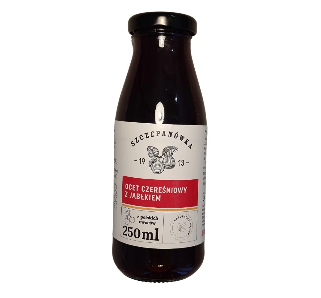 Ocet od Szczepanówki to naturalny produkt bez dodatku cukru, powstający z całych, świeżych owoców uprawianych na naszej rodzinnej plantacji. Tworzony jest tradycyjną metodą powolnej, dwuetapowej fermentacji, a następnie dojrzewa przez minimum 2 lata, dzięki czemu zyskuje głęboki smak i aromat.