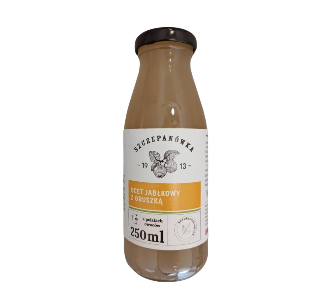Ocet od Szczepanówki to naturalny produkt bez dodatku cukru, powstający z całych, świeżych owoców uprawianych na naszej rodzinnej plantacji. Tworzony jest tradycyjną metodą powolnej, dwuetapowej fermentacji, a następnie dojrzewa przez minimum 2 lata, dzięki czemu zyskuje głęboki smak i aromat.