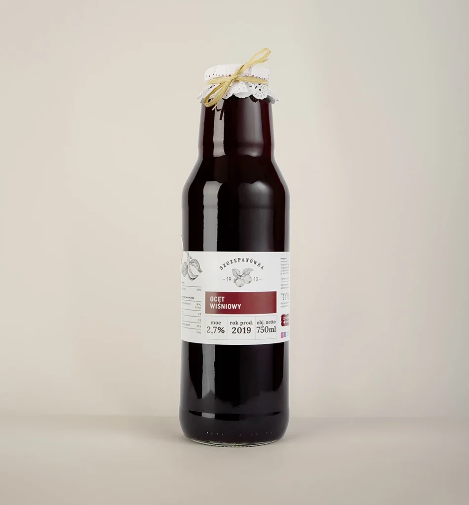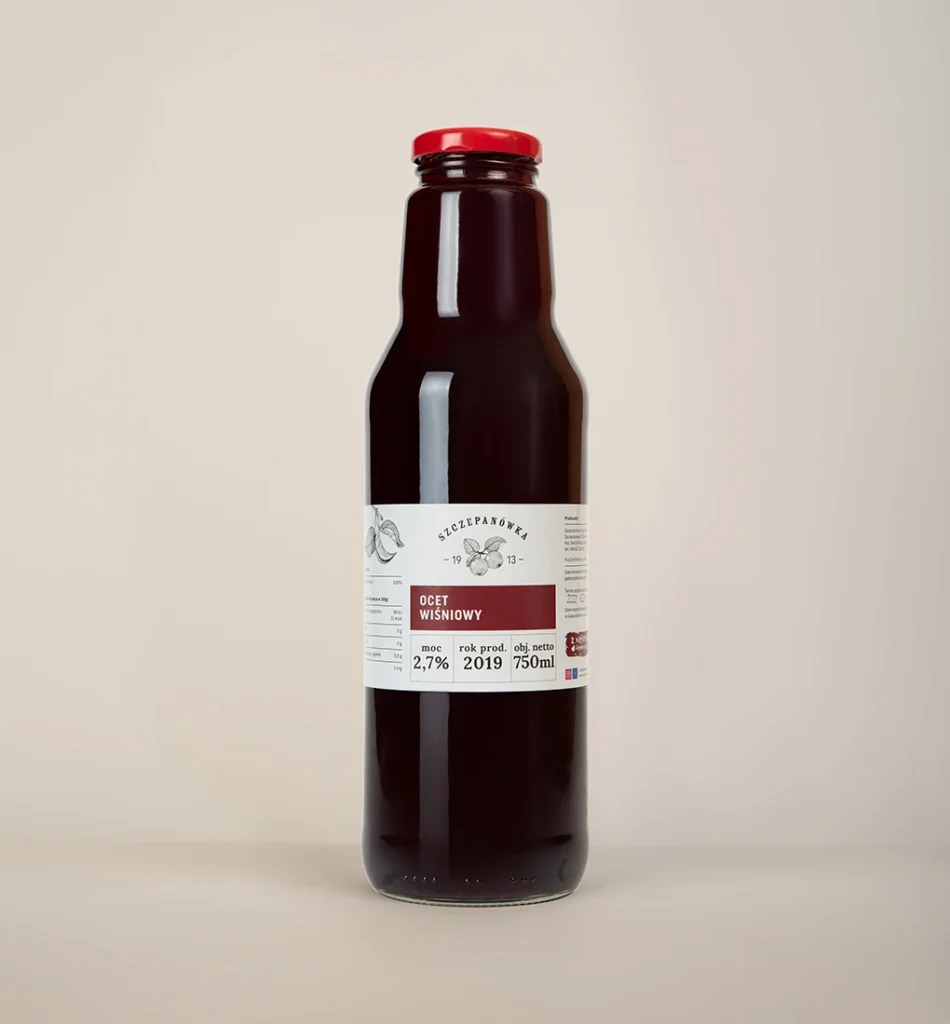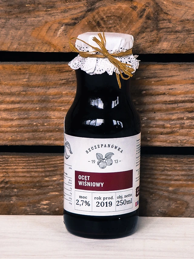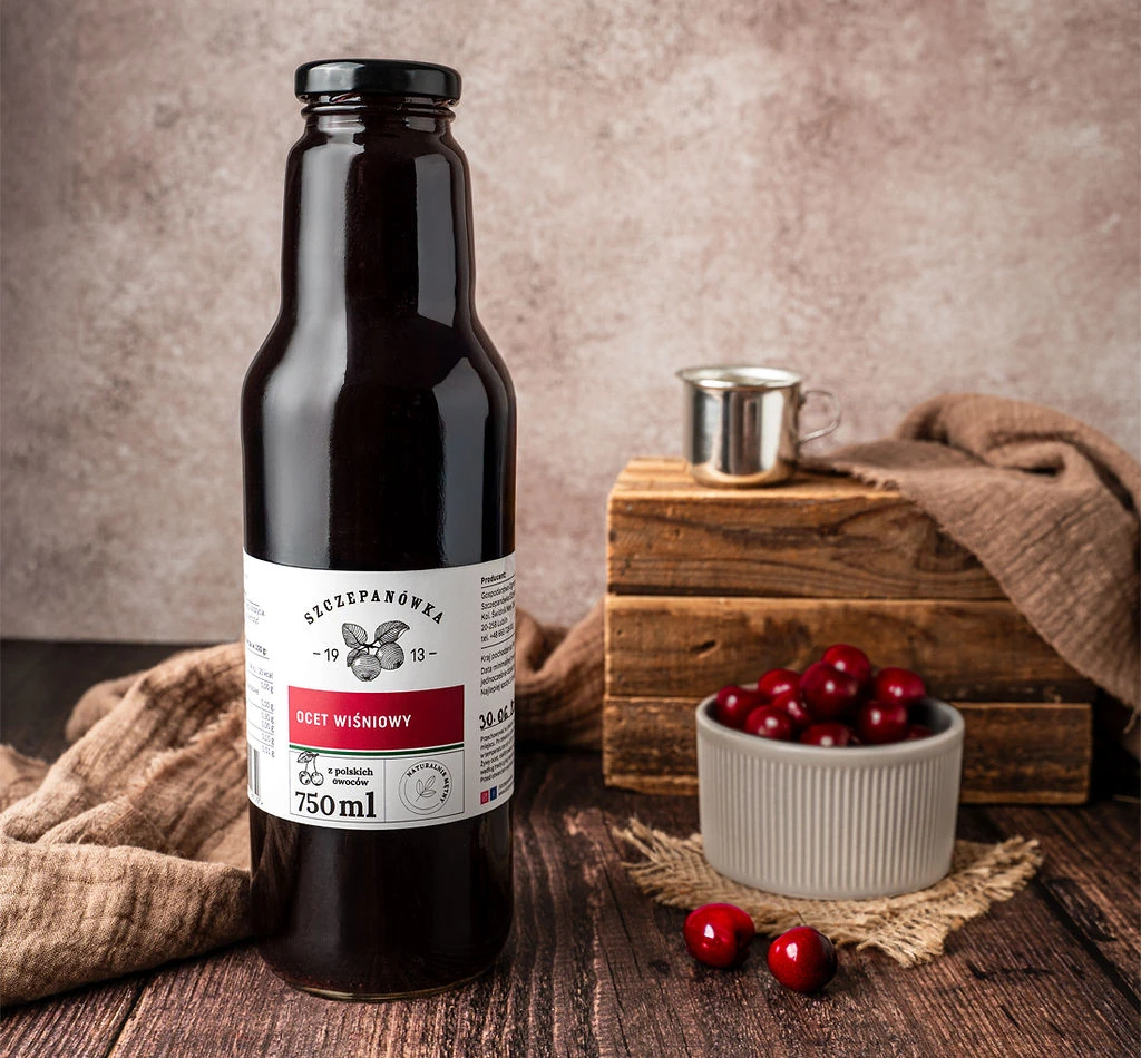 Ocet od Szczepanówki to naturalny produkt bez dodatku cukru, powstający z całych, świeżych owoców uprawianych na naszej rodzinnej plantacji. Tworzony jest tradycyjną metodą powolnej, dwuetapowej fermentacji, a następnie dojrzewa przez minimum 2 lata, dzięki czemu zyskuje głęboki smak i aromat.