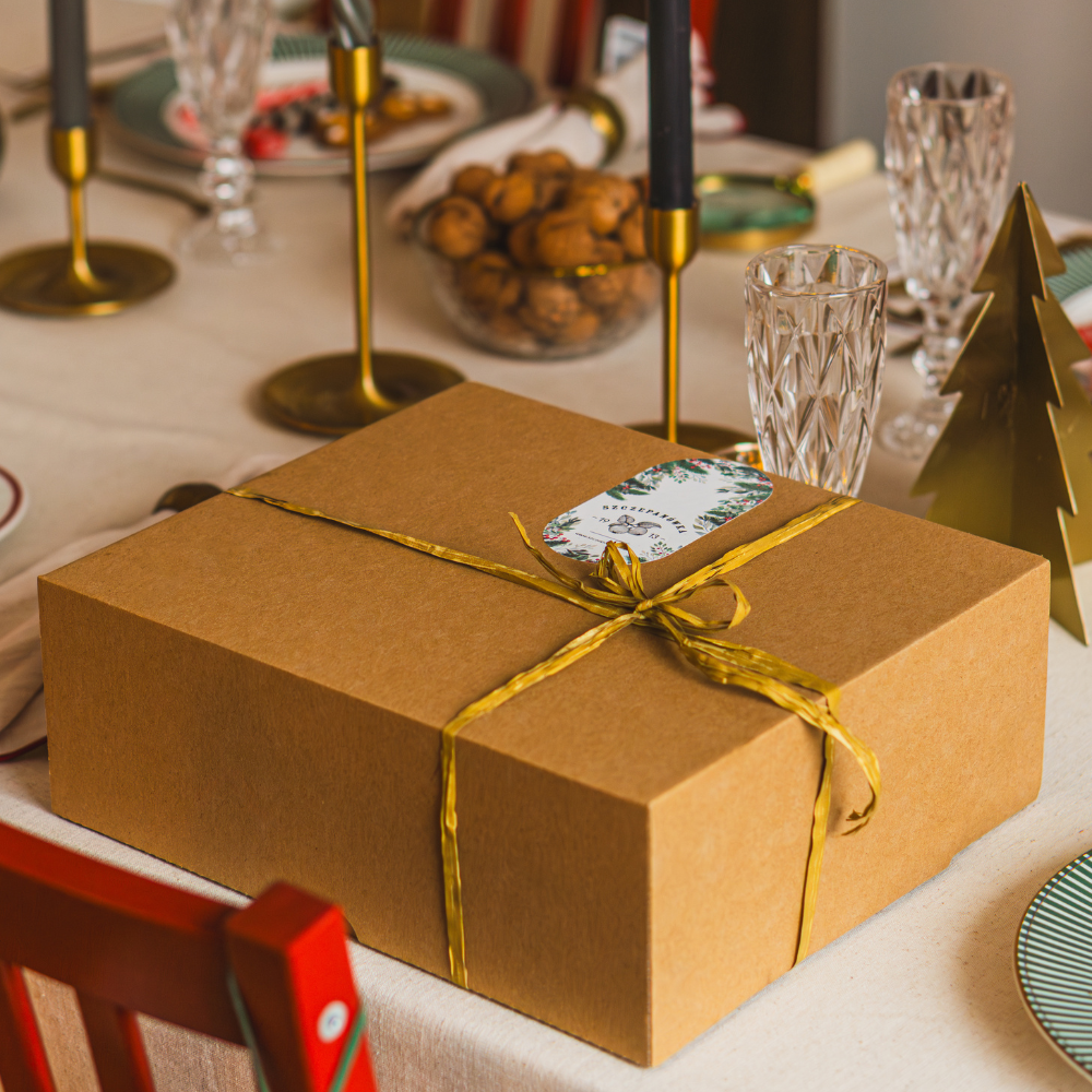 - Całość zapakowana w eleganckie pudełko przewiązane ozdobną rafią